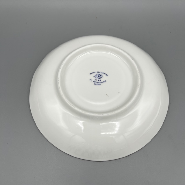 Cet ensemble en porcelaine décorée à la main trouve facilement sa place dans une collection de porcelaine ancienne, dans un intérieur élégant ou sur une table de thé. Les amateurs de brocante, d’objets de collection et d’arts de la table apprécieront la finesse du décor et la qualité de la fabrication. Le marquage sous la base indique « Hand Decorated LFZ 1744 St Petersburg Russia », signature associée à la célèbre manufacture de porcelaine de la ville.