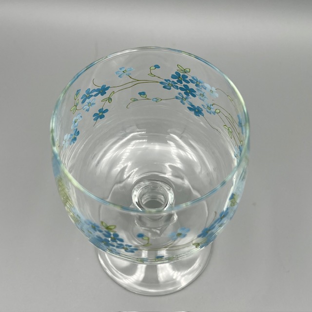 Un charme rétro et poétique pour ce verre à eau vintage Myosotis Veronica. Le décor délicat de fleurs bleues et de feuilles vert tendre apporte une note fraîche et élégante à votre table. Chaque motif, peint à la main, rappelle la douceur des repas d’antan.