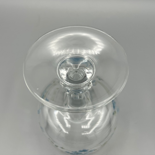 Le pied facetté et la tige travaillée soulignent le style raffiné de cette verrerie ancienne. Sa forme arrondie met en valeur la transparence du verre et le détail du décor floral. Grâce à son équilibre parfait, ce verre allie solidité et légèreté au quotidien.